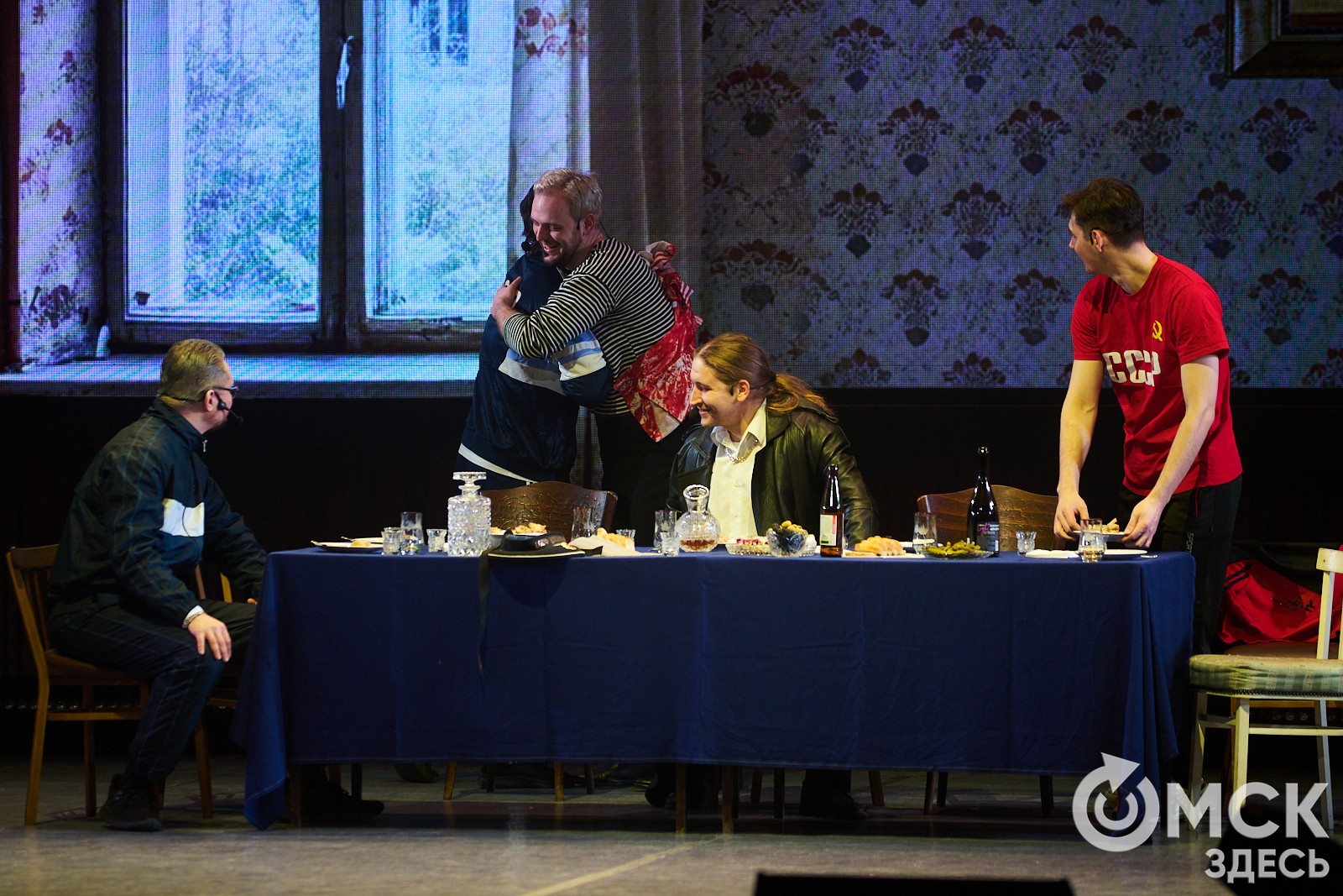 Он ведь так и не уберёг парней от яда зелёного змея, забравшего их одного за другим. Его образ воплотил на сцене сам Даниил Новиков. В прошлом зритель оказывается в эпоху скандальных и потерянных 1990-х, когда всем захотелось жить хорошо, пусть и нечестно. И есть ещё одно пространство в спектакле - мистическое, где провидение соседствует с разочарованием. Проводником в этом мире становится некий смотритель кладбища Владлен (Владимир Миллер).