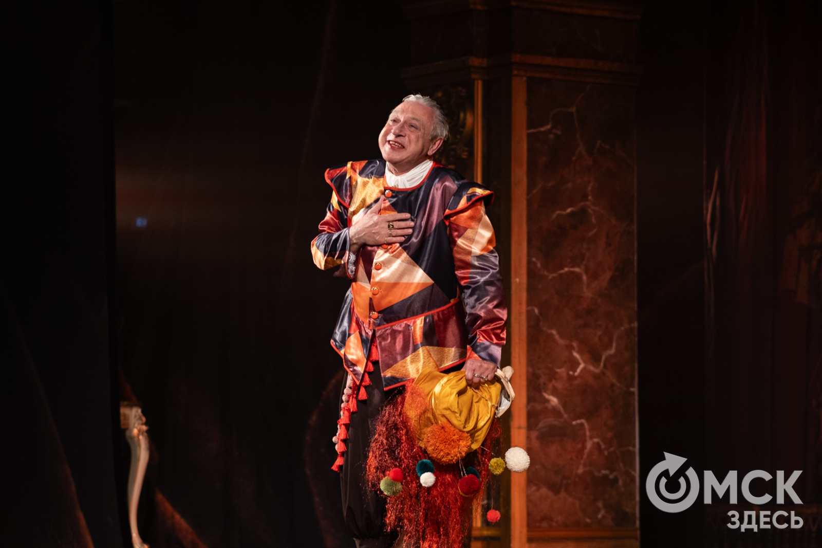 - Всё-таки давайте говорить о том, что Мольер - серьёзный автор с трагическими произведениями. В пьесе говорится, что по роду своей деятельности он хотел высмеивать пороки людей, чтобы они видели себя со стороны, как в кривом зеркале. За это Мольер и поплатился. Никто не хочет смотреть на свои пороки, - поделился с "Омск Здесь" исполнитель роли Мольера, актёр театра Сергей Левандовский.