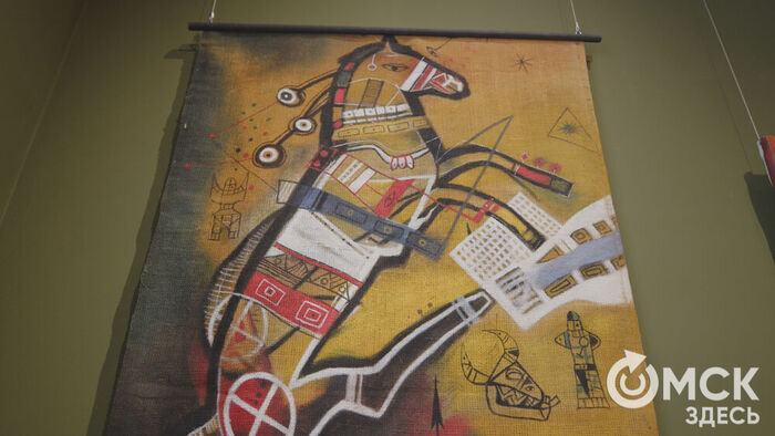 Самое интересное, что из Киргизии в Омск художник свои работы привёз самостоятельно. Произведения он скручивает в рулон, обматывает пленкой и вручную доставляет из города в город, из страны в страну. Общий вес груза составляет более 60 килограммов. По его словам, этот метод транспортировки картин возник у него благодаря воспоминаниям о предках, которые вели кочевой образ жизни и перемещались с места на место.