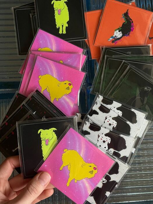 У девушки есть и свой питомец, но не из приюта. Ранее она уже разрабатывала дизайн нескольких принтов для футболок Jvcr, теперь, как она шутит, может саму себя считать художницей. В сообществе заявили, что все средства от продажи стикеров пойдут на помощь приюту. Найти их можно в магазине омских брендов на ул. Ленина, 11.