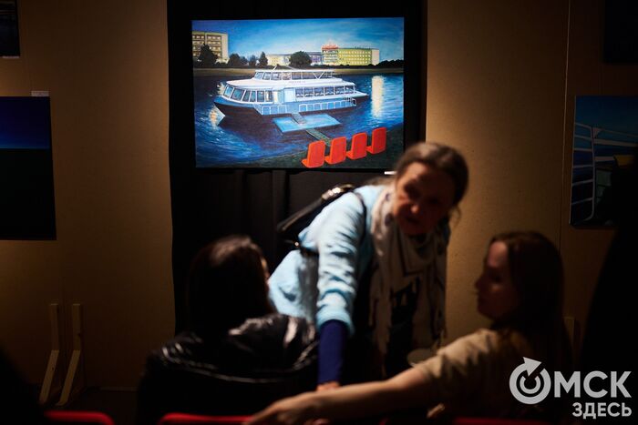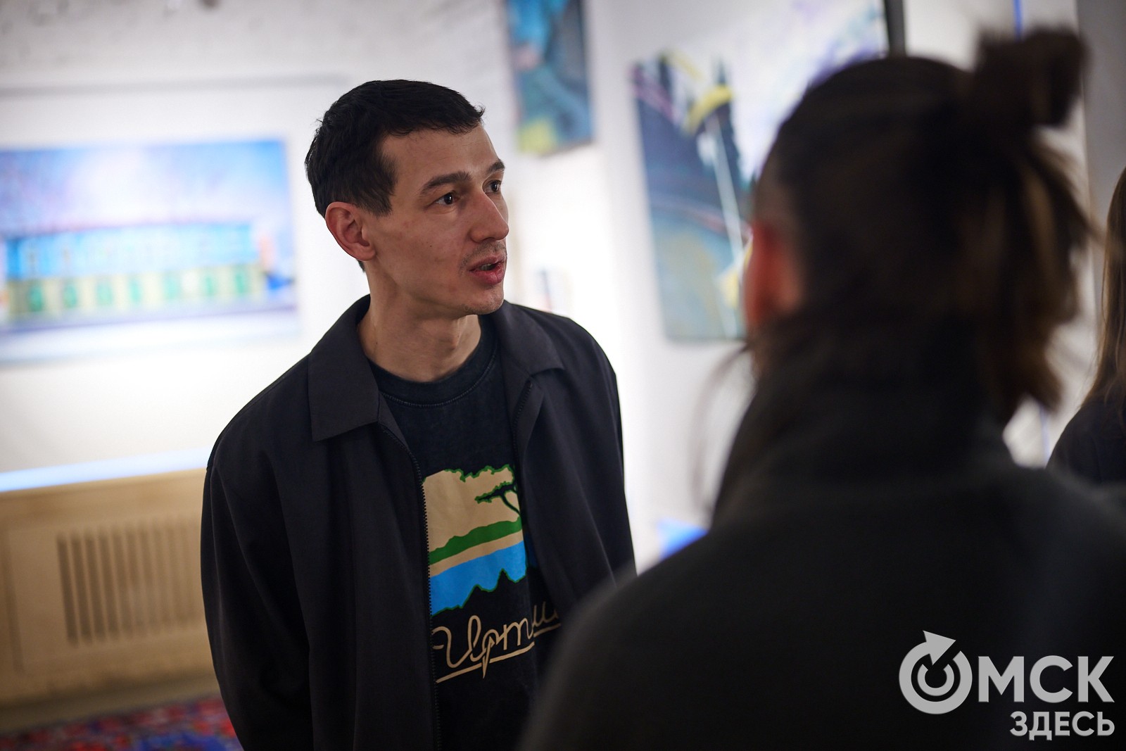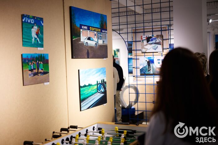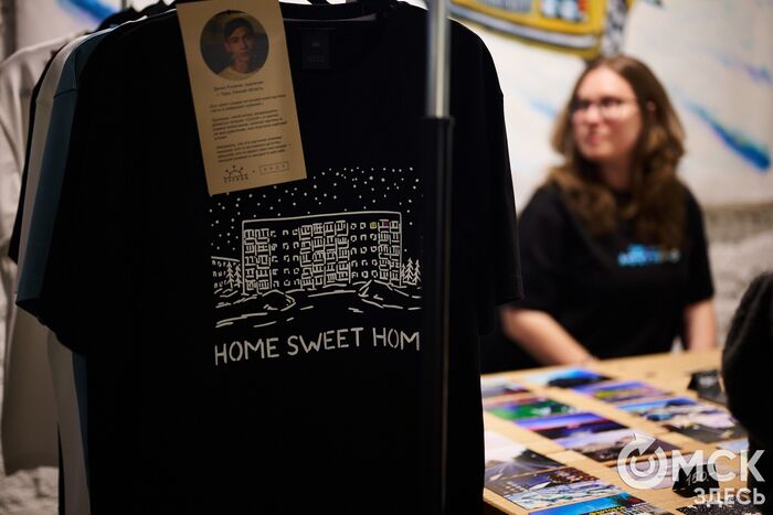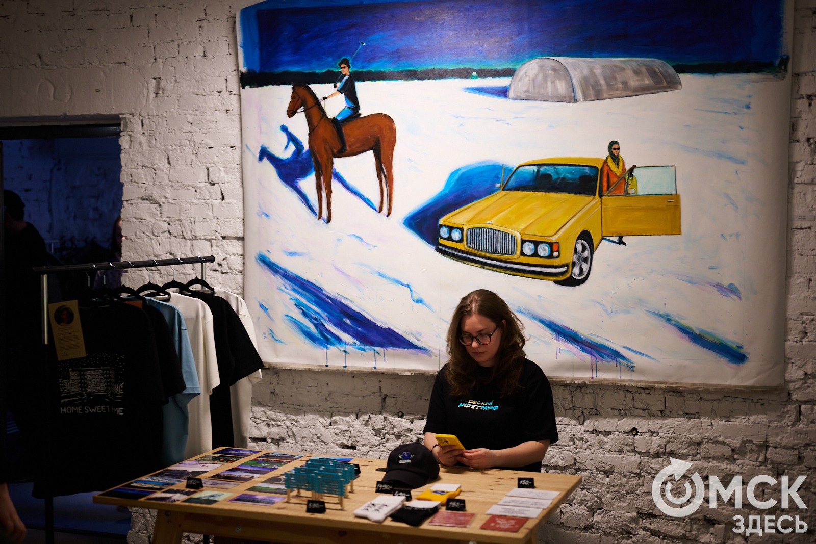 Тут, кстати, случилась пасхалка: вид на Иртыш на футболке Русакова (создавалась в рамках проекта "Искусство на теле" в коллаборации с нашими художниками) - картина и граффити авторства Антона Куприянова, который тоже пишет обыденно-романтичную Тару.