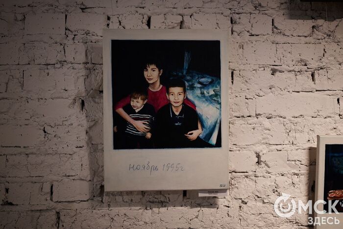 Фотографирование, кстати, используется художником как способ фиксации события и ощущений, чтобы позднее перенести их на холст. Есть картины, созданные собственно по фотографии: прожить детские воспоминания с семейных полароидных снимков, ночь за окном поезда из Омска в Томск с болотистым ровным пейзажем и то ли луной, то ли отражением телефонного фонарика в стекле. "Интересно было посмотреть, как будет выглядеть минимум два цвета и фонарь, как это может сложиться в глубину, в историю".