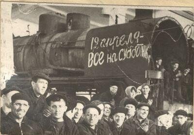 Субботник Омского драматического театра и локомотивного депо, 1960-1970-е гг. Фото: Музей театрального искусства, ОГИК музей (goskatalog.ru)