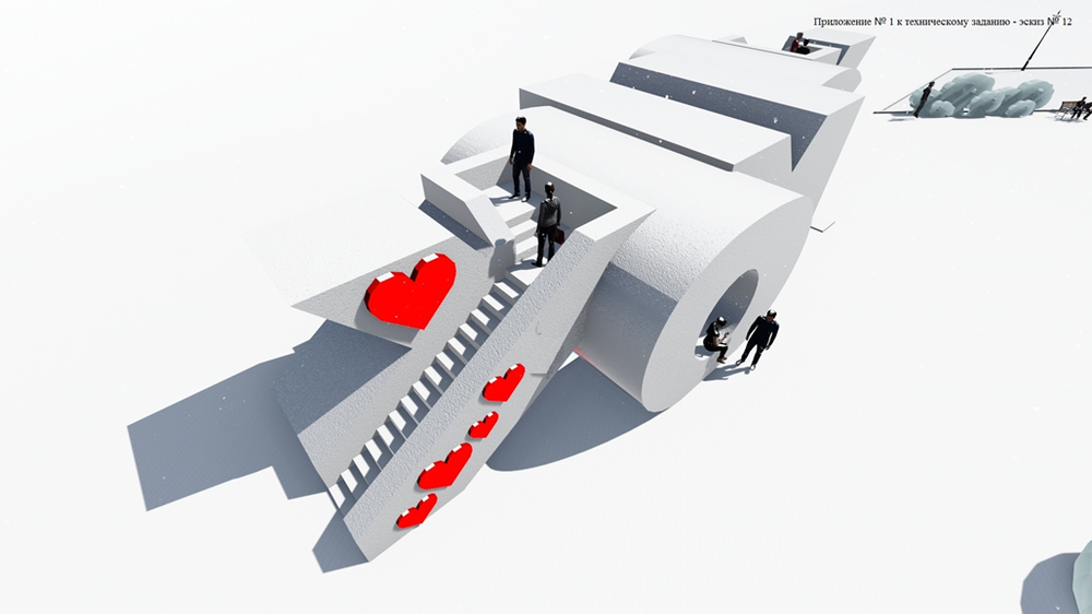Красиво!..Лестница с сердечками понравилась)) А вот коричневые здания, похожие на коровники, как-то не в тему вовсе... коровники ведь мало у кого с праздниками ассоциируются.