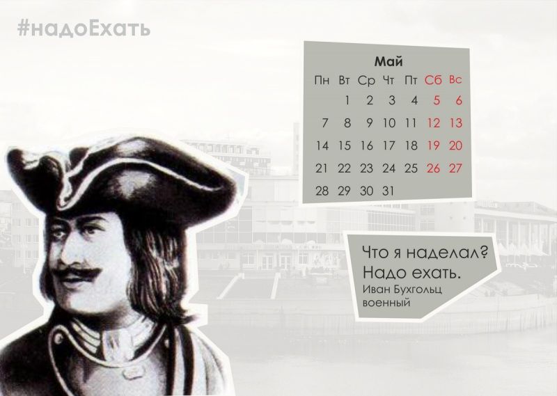 Омский блогер выложил на своей странице в ЖЖ календарь с призывом #НадоЕхать. Он создан в противовес идее регионального Минкульта и туристского центра. В их календаре 12 известных путешественников со всего мира, условно побывав в омском регионе, решили не уезжать. Под исследователей и мореплавателей загримировали актеров ТЮЗа и сфотографировали их на фоне омских пейзажей. К каждому коллажу придумали фразу, почему путешественники захотели остаться.