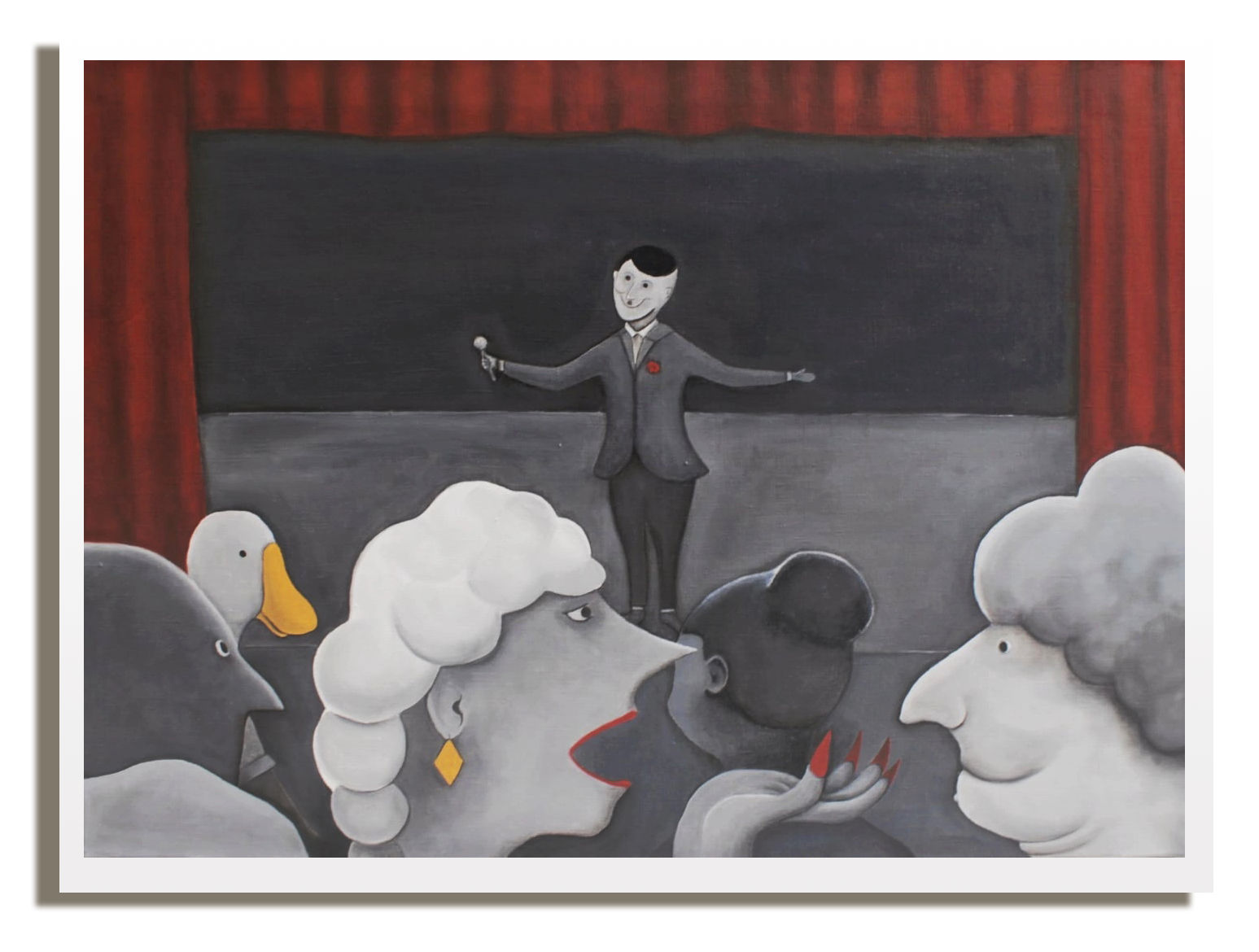 - Гусь - это та птица, которая никого не оставит равнодушным. Их любят, их боятся, их уважают. Я вот и сейчас их немного побаиваюсь. Всё-таки мало приятного, когда тебя кусают. Гуси всегда вызывают эмоции у человека. В моих картинах Гусь - это символ простого человека, обычного жителя планеты Земля, проживающего самую обычную жизнь. Но порой на некоторых картинах он живёт, наоборот, интересной, насыщенной и немного опасной жизнью. Мои картины с Гусём рассказывают истории, но при этом зритель всегда фантазирует и всегда придумывает свой сюжет. Кстати, имён я своим птицам тоже не даю, оставляю это вам.