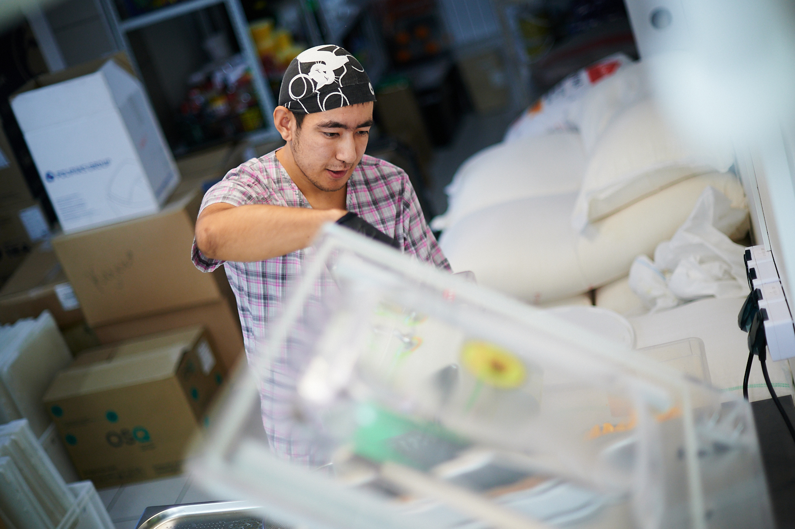 Ринат работает на кухне и помогает поварам с сиропами для напитков - моет и чистит фрукты, выжимает сок из апельсинов, разливает готовые сиропы по бутылкам. Работа не сложная, однако требует терпения и концентрации. За день Ринату нужно наполнить сиропом около 300 бутылок. При этом он всегда готов помочь кому-нибудь сверх своих обязанностей. Всё потому, что молодому человеку очень нравится работать. Он встаёт за несколько часов до начала рабочего дня - боится опоздать, а по его окончании не спешит убегать домой.