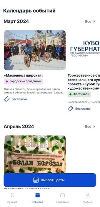 Фото: скриншот приложения "Единый событийный календарь", архив "Омск Здесь"