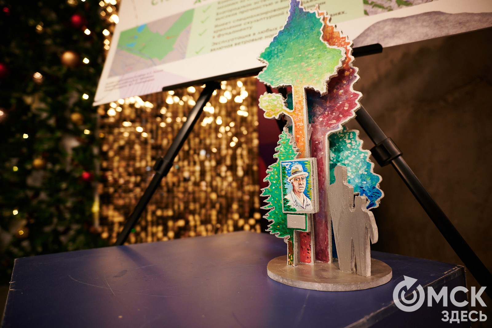 Были проекты не про Омск, но это не значит, что они не могут быть применены где-то ещё. Например, ёлка для площади в Улан-Уде, источником идеи которой стали рельсы. Железная дорога, образующая спиралевидную ель, лентой тянется за зону круговой композиции, на конце которой расположена дрезина. Символика близка Омску: в конце 19 века город стал узловым пунктом знаменитого Транссиба, Великого Сибирского пути, связавшего железнодорожным полотном европейскую часть России и Дальний Восток.