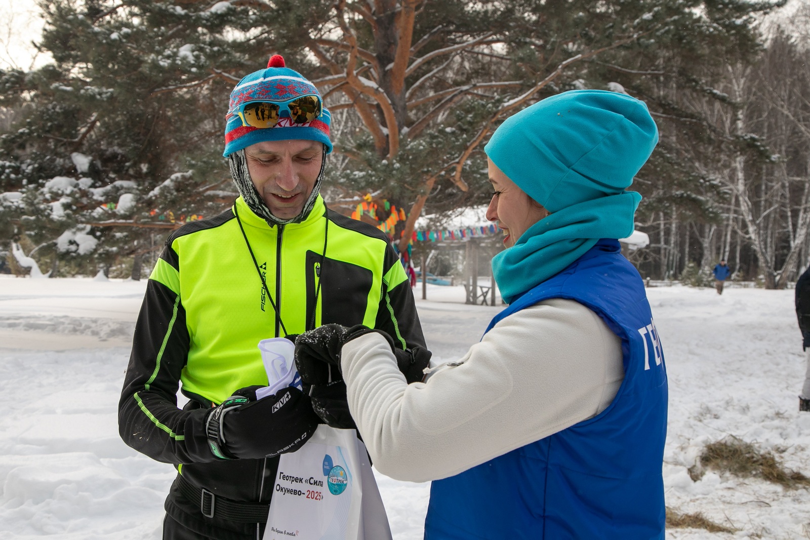 Принять участие в зимнем Геотреке "Сила Окунево" мог любой желающий. Но поскольку мероприятие организовывали впервые, число слотов ограничили, чтобы легче было обеспечить безопасность на непростом маршруте. Первопроходцами стали 100 человек и известная омская лыжница, призёр Олимпийских игр Яна Романова. Её, как особого гостя, пригласили для торжественного старта и вручения подарков. Но Яна не просто откликнулась на предложение, а прошла всю дистанцию сама: