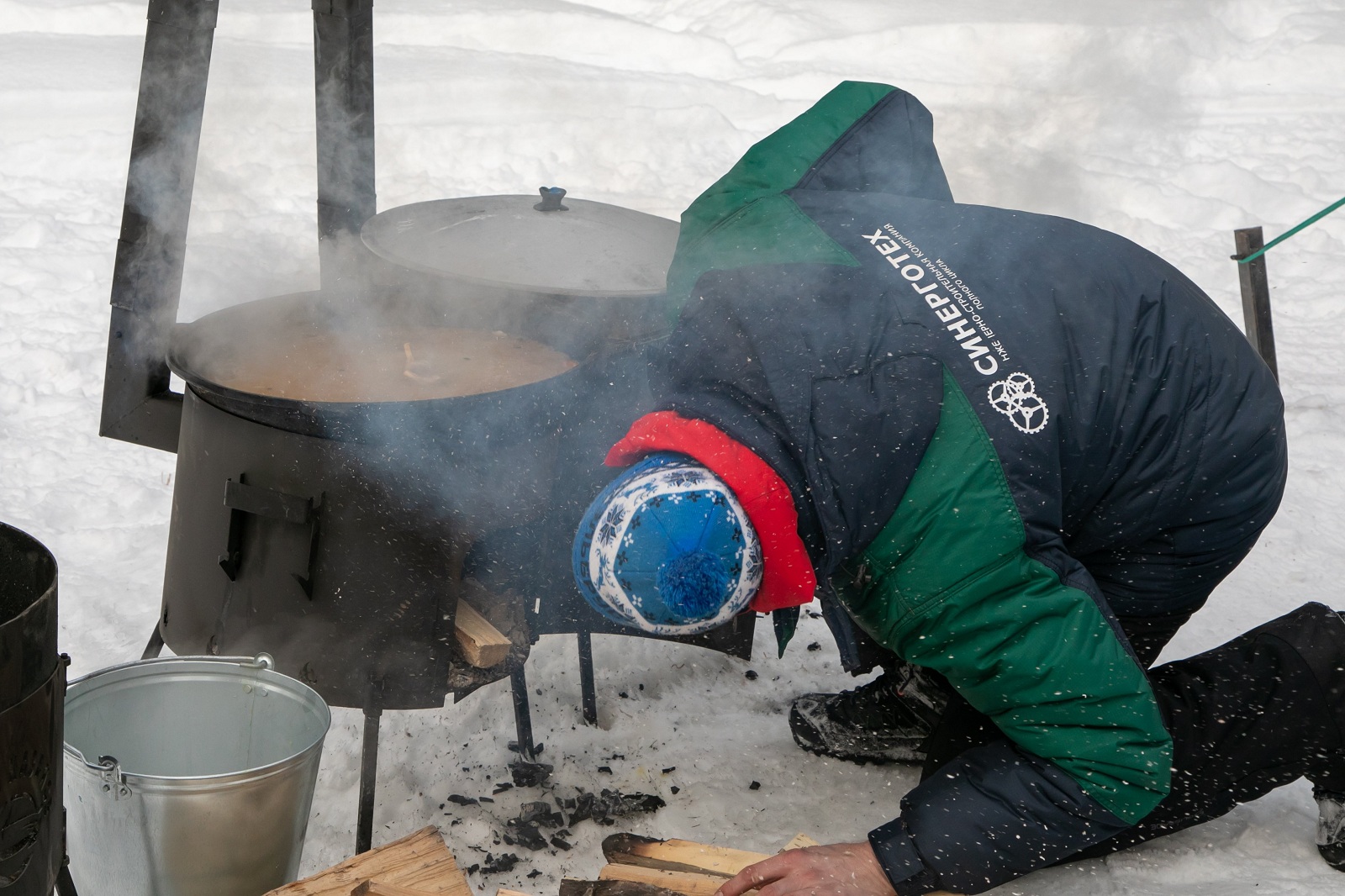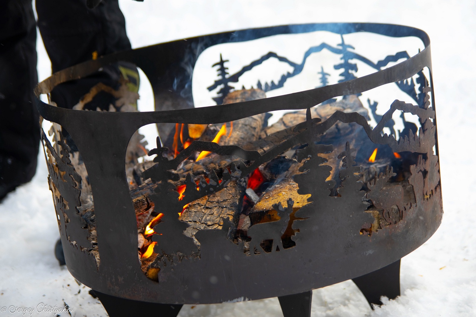 Примерно на середине пути в Кордоне Бергамак ждал не только горячий чай, но несколько сотен бутербродов, которые к приходу первых лыжников уже высились горкой на столах. Костёр погреться, невероятные виды сфотографироваться на память и музыка, непривычная после километров тишины.