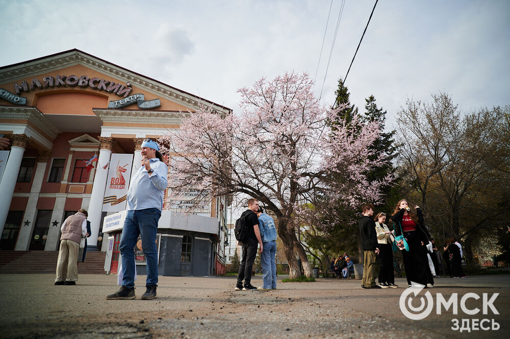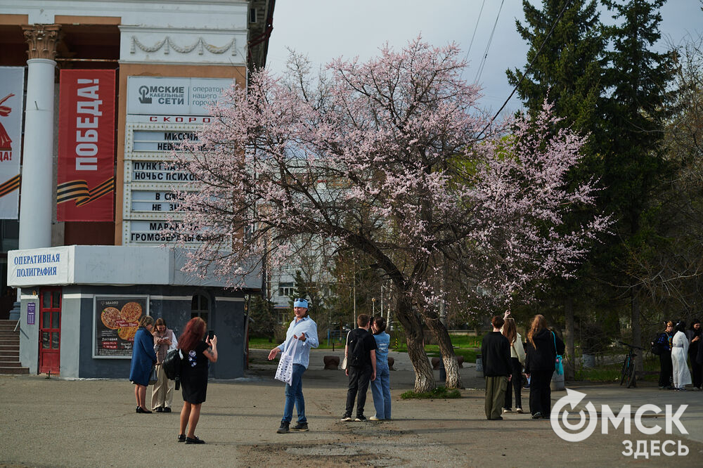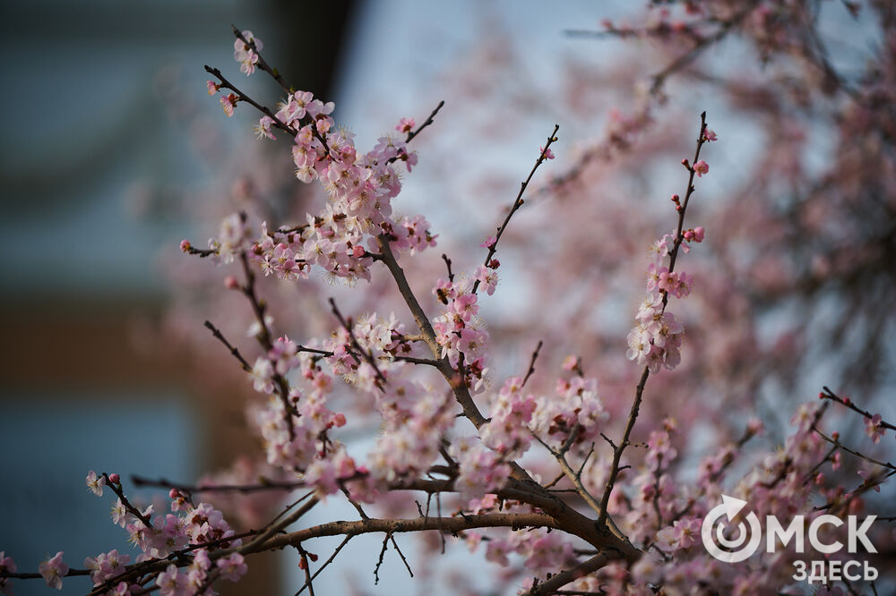 По традиции весной площадь у кинотеатра "Маяковский" привлекает внимание омичей - каждую весну здесь расцветает абрикосовое дерево. В этом году это случилось раньше обычного. Ветви дерева уже буквально усыпаны нежными бело-розовыми цветами. Ещё один абрикос готовится набрать цвет в сквере имени Дзержинского.