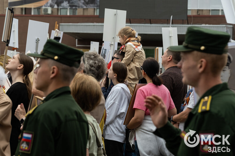 - Очень важно идти в этом строю, показывать молодому поколению сплочение и уважение к истории. В моих руках портрет прадедушки Руденских Александра Феропонтовича. Он ушёл на фронт в 1941 году из села Кочки Новосибирской области, был сапёром. Дома ждали пятеро детишек и жена. Прошёл почти всю войну, но, к сожалению, так и не встретил победу - погиб за три месяца до неё. Подорвался на мине, - поделилась Мария Шишко.