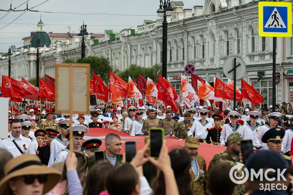 Пронести портреты своих близких, участников ВОВ, по улицам Омска вышли более ста тысяч человек. Колонна "Бессмертного полка" проследовала от Соборной площади до бульвара Победы к мемориалу "Слава героям".