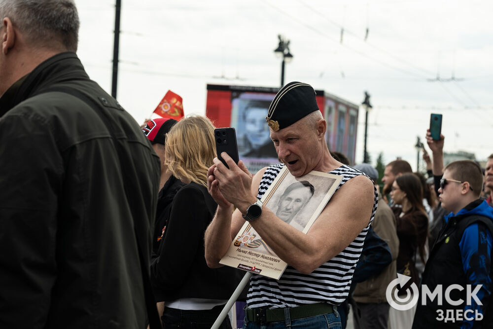 - У меня в руках портрет моего дедушки. Василий Михайлович Белозёров был призван в 1941 году с Украины, был зенитчиком. Дважды попадал в плен и каждый раз бежал. После победы он вернулся домой, и мне посчастливилось с ним познакомиться. Он был серьёзным человеком, прошедшим концлагерь, войну. Он - гордость нашей семьи. И мой долг - принять участие в этом шествии. Эта акция объединяет народ. Это дань уважения тем, кто ковал победу, и мы не должны забывать, чего это стоило людям тех лет. Дети должны это всё знать, - уверен омич Руслан Лихачёв.