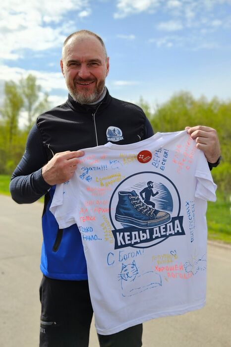 Андрей решился на этот сложный маршрут, чтобы поддержать тех, кто прикован к постели и инвалидному креслу и не может выйти из дома. Акцию "Кеды деда" благотворительный фонд "Обнимая небо", с которым сотрудничает волонтёр, придумал благодаря одному из подопечных - 78-летнему инвалиду-колясочнику Николаю Тимофеевичу. Несмотря на недуг, пожилой омич не теряет бодрости духа. Кеды, как символ движения и молодости он хранит у себя дома на гвоздике в коридоре.