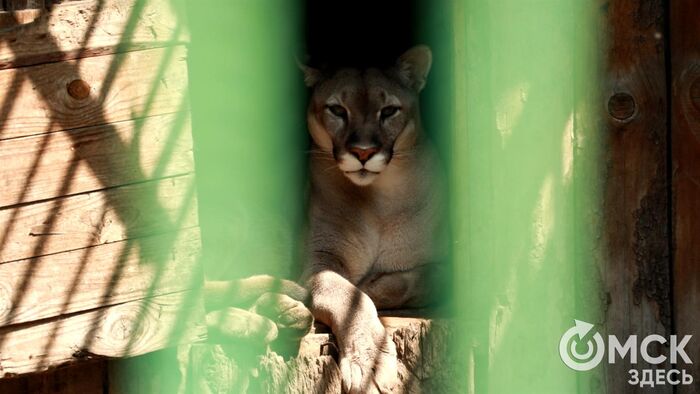 Пуме досталось развлечение в виде картонной зебры, внутри которой тоже был спрятан кусочек мяса. Однако палящее солнце и высокие температуры заставили хищницу лениться, она предпочла смотреть на потенциальную "жертву" из тенистого уголка своего вольера.