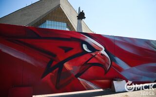 Строительную площадку огородили надёжным бетонным забором, на котором появились яркие граффити, отражающие историю омского хоккея. Автором работы является известный граффитист Марат Абишев.
