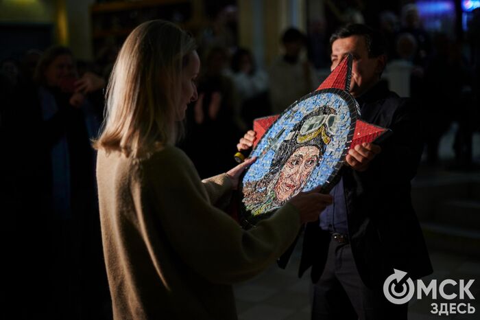 Не обошлось и без неожиданностей: в конце вечера актрисе сделали сюрприз и подарили мозаичный портрет с кадром из фильма. Его вручную выполнил художник-монументалист Антон Козлов.