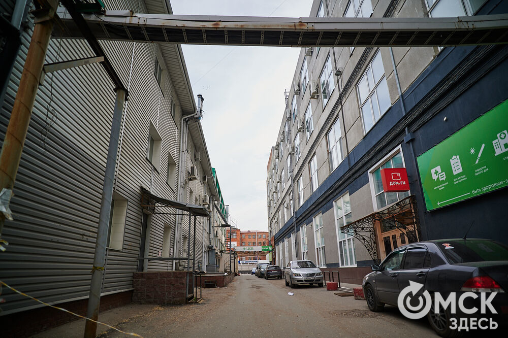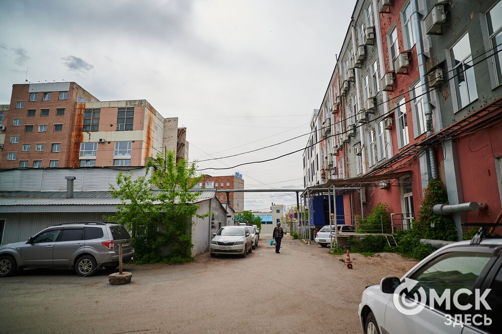 Речь, напомним, идёт о комплексе зданий на Маркса, 18 - Маркса, 18/28. Его история началась с императорского механико-технологического училища 1912 года, украсившего заметки "Будущих архитекторов", разрослась до места пребывания эвакуированных заводов, на базе которых появился "Электроточприбор" (поначалу "Омский завод электротехнической аппаратуры"), и застыла где-то в нулевых с десятками собственников, пластиковыми баннерами и отсутствующим благоустройством.