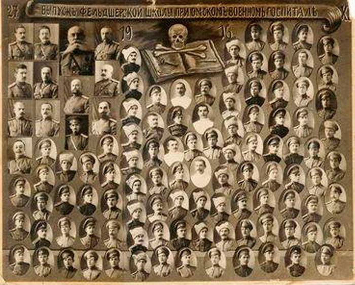 Здание фельдшерской школы в 1900-е и выпуск 1916 года. Источник: государственный музей истории Санкт-Петербурга, ОГИК музей (goskatalog.ru)