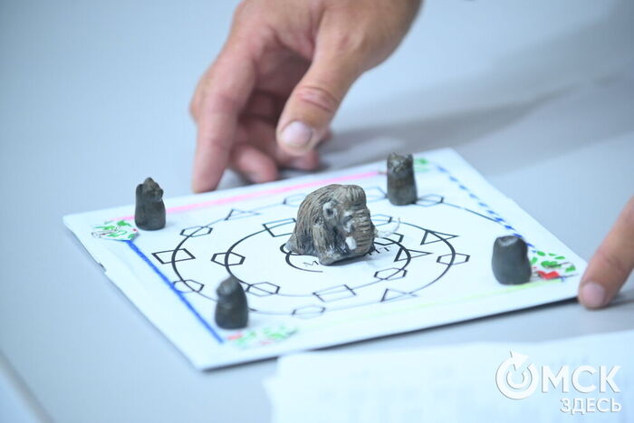 В Омске с наступлением учебного года планируется большая образовательная программа в рамках проекта. Чтобы знакомство с сибирским кроманьонцем было интереснее, лекции дополнит настольная игра "Охота на мамонта" (на фото ниже). Она построена по классическим правилам "бродилок" - необходимо кидать кубики, делать соответствующее количество шагов и выполнять задания. Участвуют два игрока, их цель - первым добраться до мамонта.