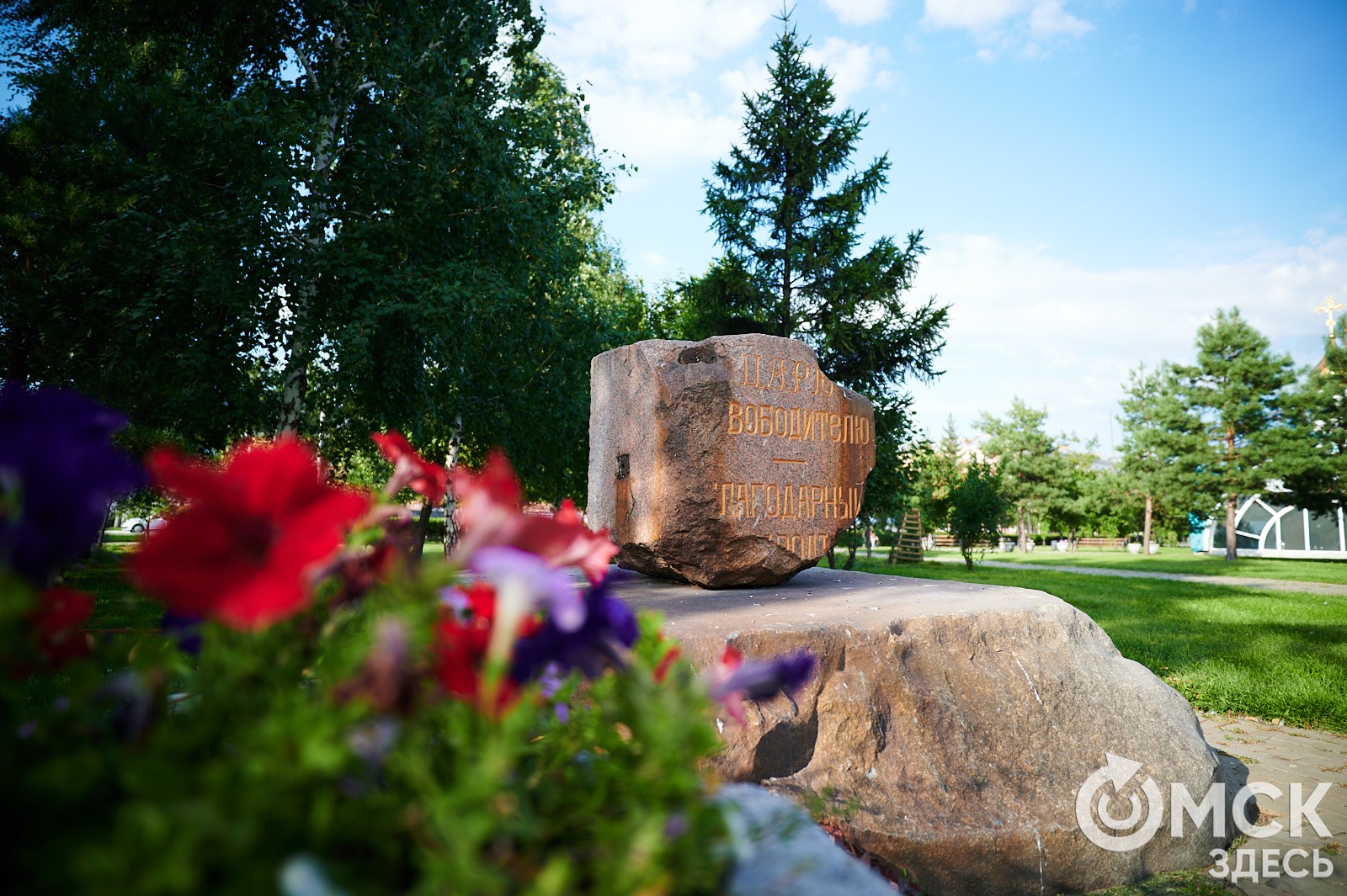 Фрагмент памятника "Царю-освободителю [Александру II] - благодарный народ", найденный на раскопках. Установлен в храмовом сквере со стороны ул. Интернациональной в 2005 г.