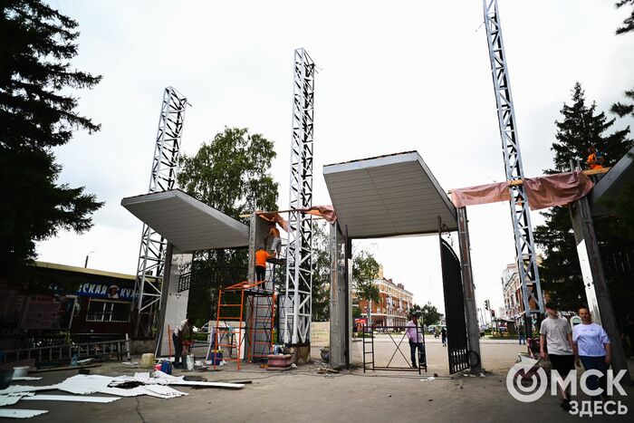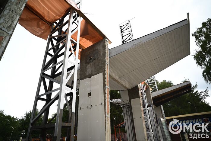 Параллельно продолжается замена входной группы. Анонсированный проект вызвал смешанные чувства у омичей. К его реализации у некоторых тоже могут быть вопросы: на баннерах уже используется слабо читаемый логотип, стиль советского модернизма, который так или иначе угадывался в сооружении, скрыт сайдингом. При этом обещаны были "современные материалы и технологии".