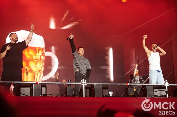 Артисты зажгли публику хитами "Пофиг", O Yeah, "Камикадзе", "Не отпускай моей руки" и "Я не вернусь". Закатанные лучи сменились чарующим мерцанием мыльных пузырей. В завершение музыканты пожелали, чтобы каждый омич гордился своим городом и обязательно нашёл здесь всё, что нужно для счастья и успеха.