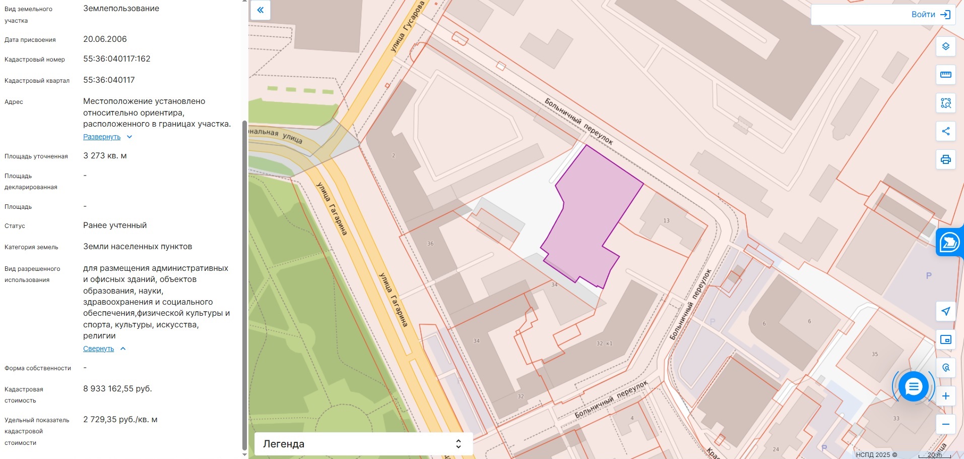 Земельный участок, предполагаемый под застройку. Скриншот Национальной системы пространственных данных
