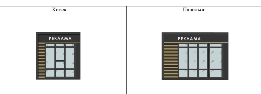Проектом, опубликованным накануне, предложен формат киосков и павильонов, выполненных в цвете тёмного графита вместо светло-серого с добавлением декоративных элементов - алюминиевых ламелей под дерево. При этом не допускается применение кирпича, строительных блоков, профлиста, винилового сайдинга. Последние условие, кстати, не ново, оно введено ещё в 2018 году, но не всегда соблюдается.
