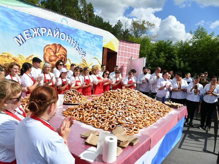 Повара приготовили калачей с запасом, чтобы уж точно хватило для оформления заявки на регистрацию достижения в книге "Рекордов России". В ней Калачинск указали как центр хлебных традиций и столицу сибирского калача.
