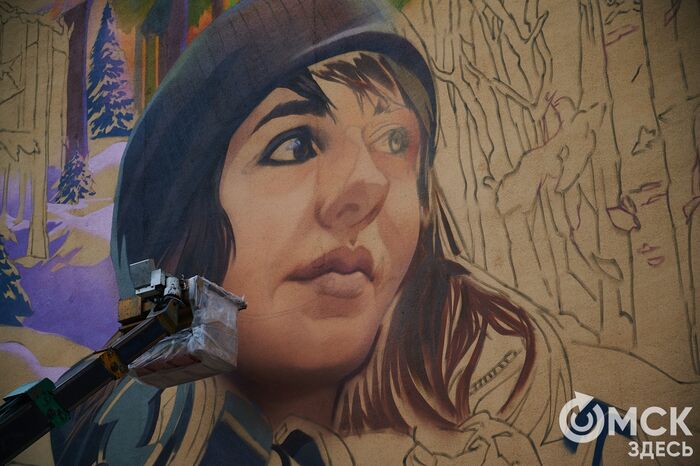 Мурал появился у остановки "Дом туриста", на торце здания по ул. Гагарина, 2. На его создание ушло менее двух недель. "В кадре" - фотокорреспондент омского сетевого издания NGS55.RU Елена Латыпова.