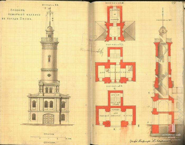Проект пожарной каланчи, 1912 г. Источник: Исторический архив Омской области