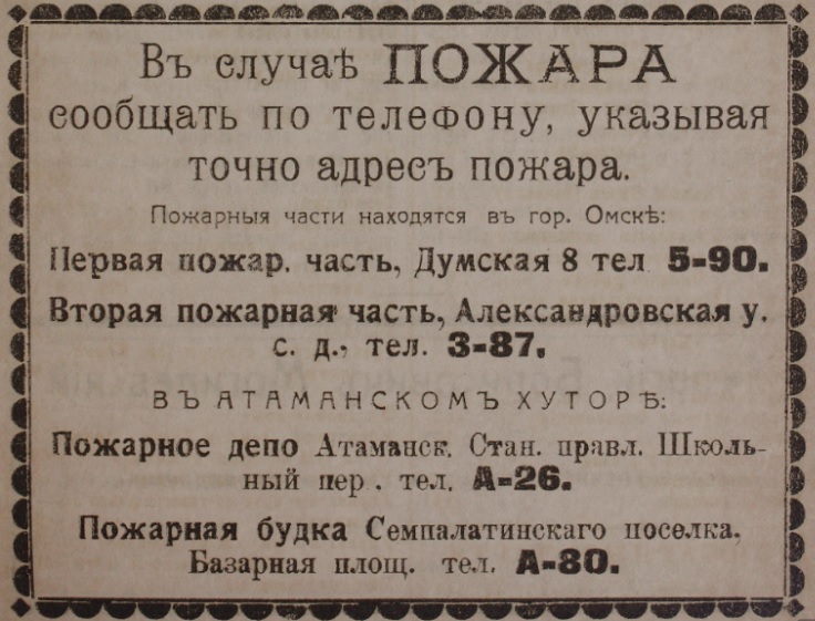 Объявление в Справочнике и списке абонентов за 1919 г. Источник: областная научная библиотека им. А. С. Пушкина