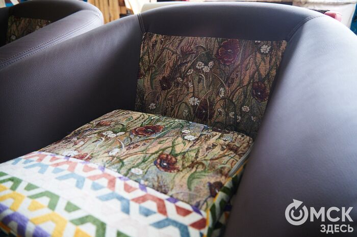 Прежняя обивка раритетных кресел износилась (или же истёрлась активными фанатами), съёмные сиденья разыскать не удалось. "Подсмотреть", как они могли выглядеть, пытались в интернете, пробовали разузнать и у дизайнеров. Когда нашли на барахолке схожее кресло, отталкивались от его облика и "общей стилистики" страны Советов, чтобы современные материалы отсылали к ретро.