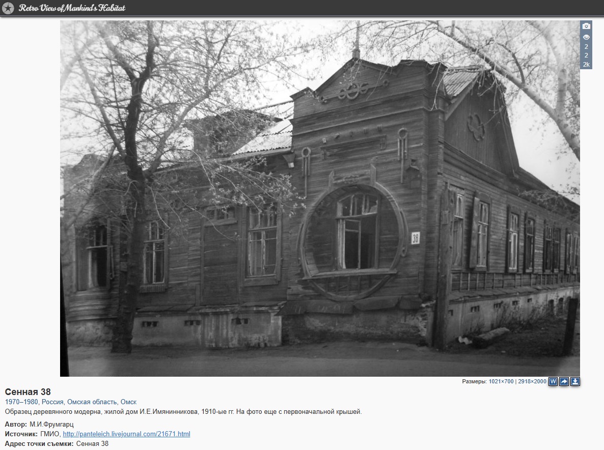 Речь идёт об объекте культурного наследия регионального значения (ОКН), известном как жилой дом купца Имянинникова 1910-х годов постройки. Он находится на ул. Сенной, 38, в 300 метрах от остановки "Дом туриста". Деревянный памятник архитектуры, выполненный в стиле модерн с отличительной круглой рамой, за последние полвека сильно оскудел в убранстве: исчезли аттики, наличники, декор. Как полагают историки, такая нарядность не слишком подходила для вытрезвителя, "квартировавшегося" здесь.