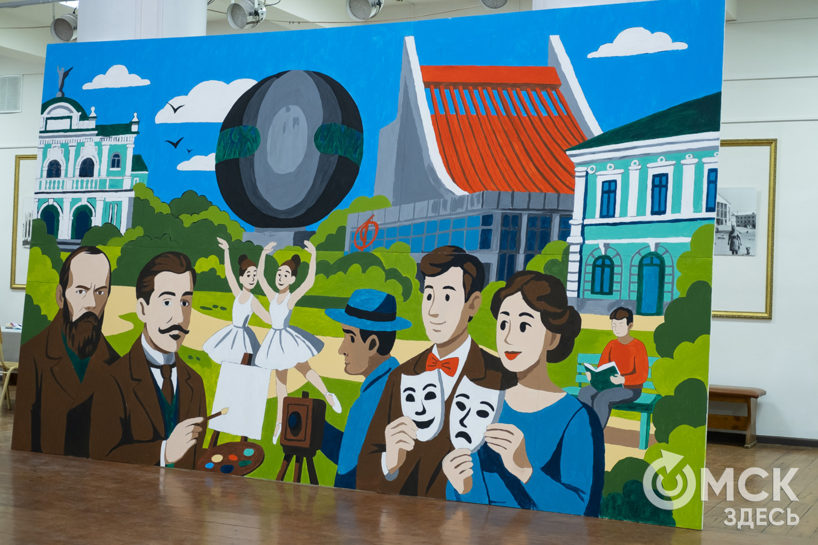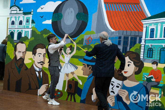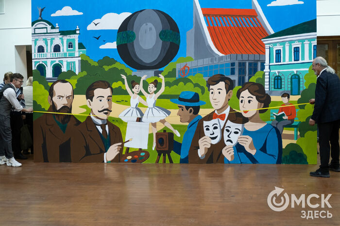 Сюжет работы посвящён предстоящему статусу Омска как "Культурной столицы-2026". На холсте можно увидеть омские театры и другие городские достопримечательности, писателя Фёдора Достоевского и художника Михаила Врубеля и, конечно, самих омичей.