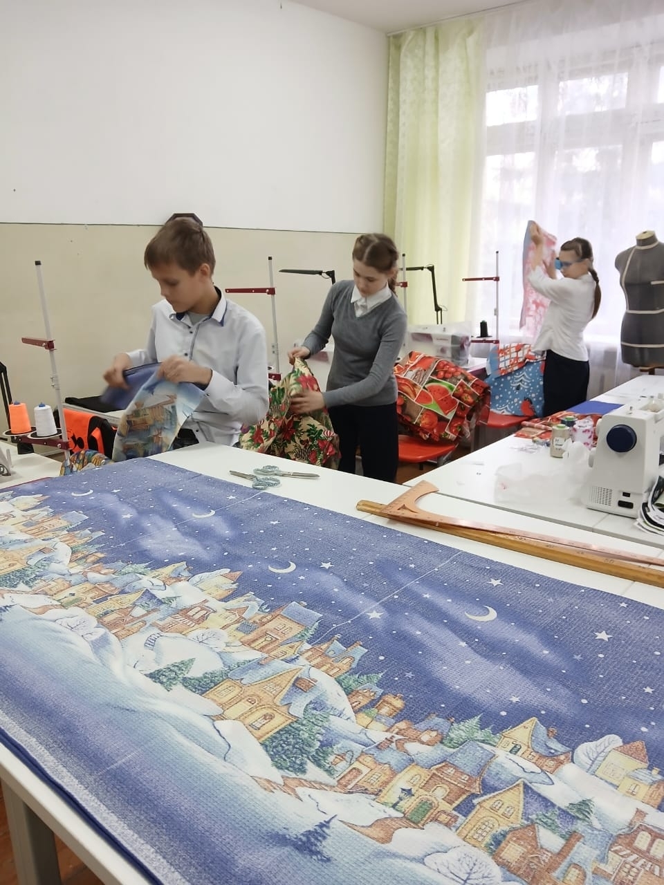 Волонтёр не раз в разговоре подчеркнула, что ребята из школы умеют хорошо шить, у них есть необходимое оборудование, талантливые педагоги, но часто не хватает тканей. Однако администрация старается находить материал, чтобы ребята и педагоги могли оттачивать своё мастерство.