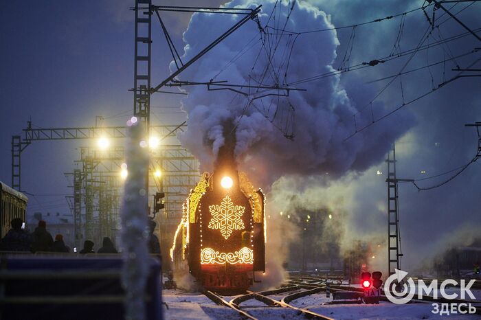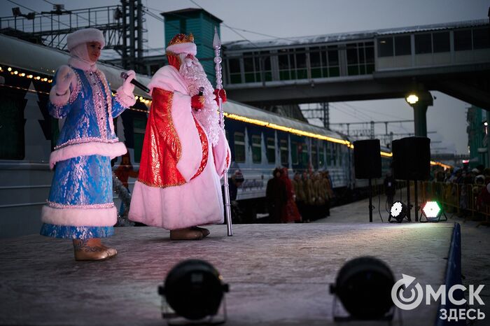 Сегодня, 10 декабря, в Омске сделал остановку праздничный состав команды Деда Мороза. Зимний волшебник и Снегурочка прибыли в наш город, чтобы лично поздравить юных омичей. Они приехали из Великого Устюга, преодолев полстраны. Их новогодний поезд прибыл на станцию ровно в девять утра.