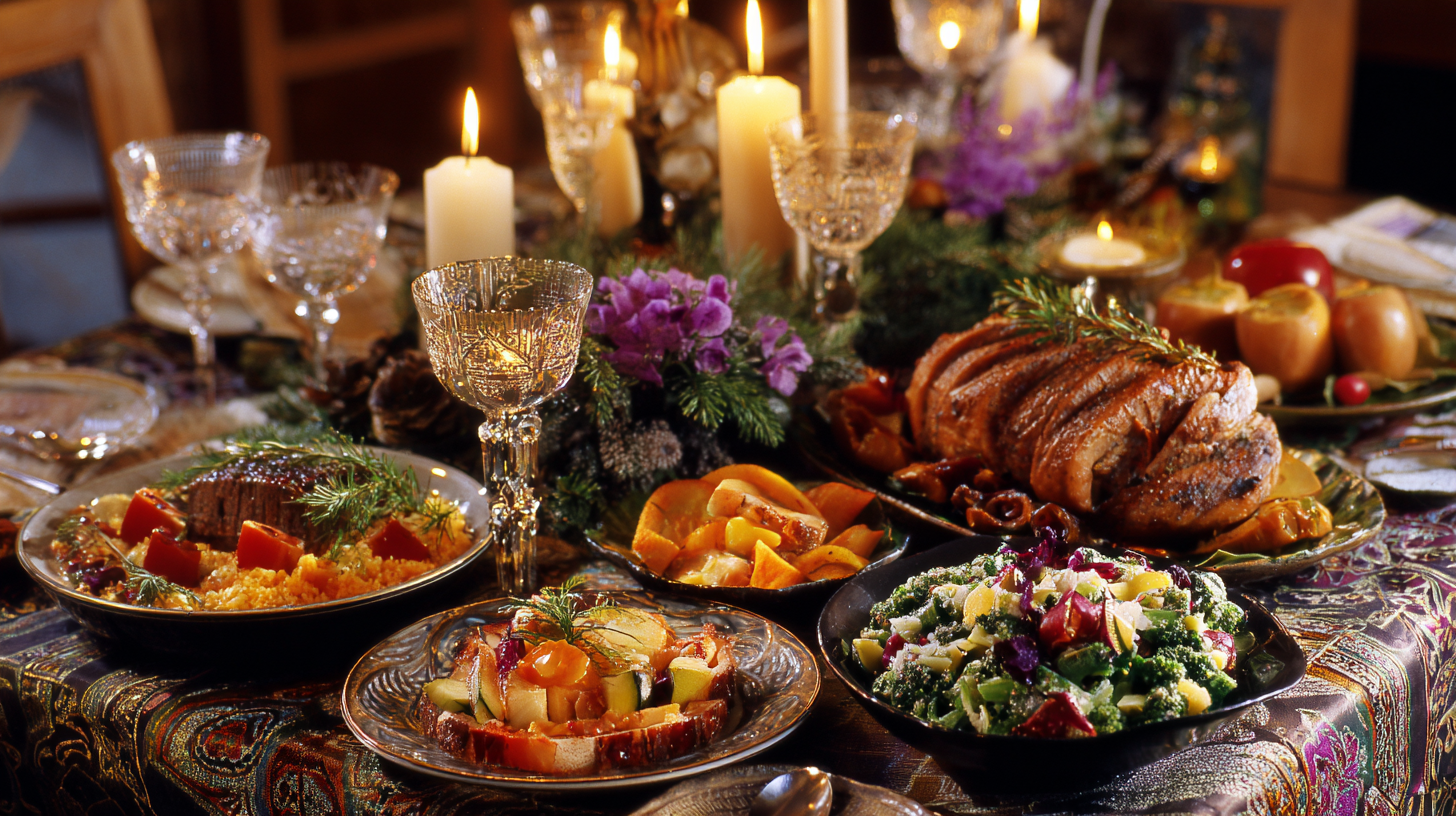 Обильное угощение на новогоднем столе символизировало достаток и благополучие в грядущем году. Чем разнообразнее и богаче застолье, тем успешнее, по поверью, должна сложиться судьба.