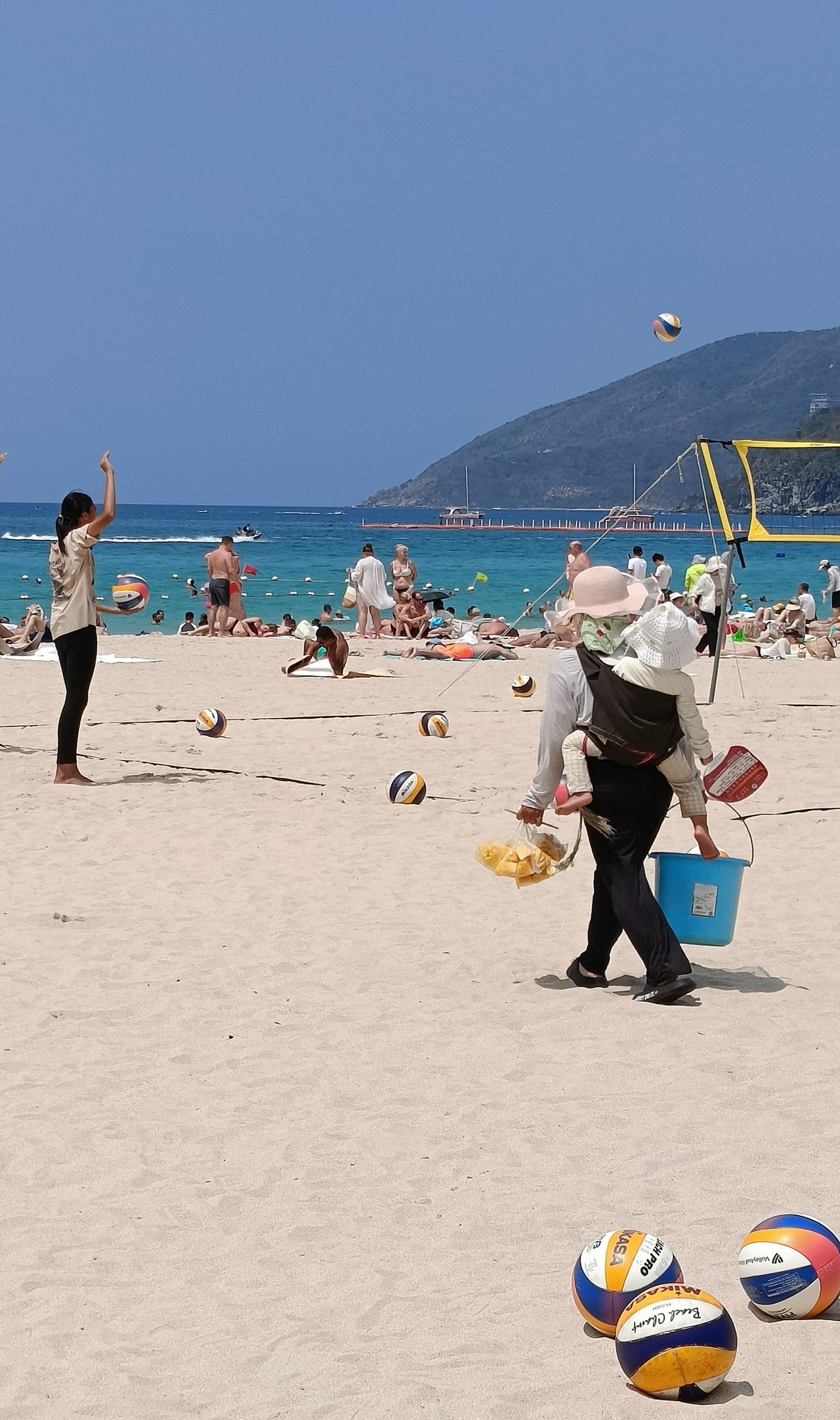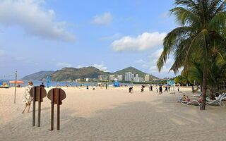 Остров Хайнань омывает Южно-Китайское море, которое кажется менее солёным, чем Чёрное. Главный плюс тех краёв, конечно, песок и пологий заход в море. Во время отлива можно вообще дойти до границы "загона", которыми местные спасатели ограничивают потуги туристов уплыть подальше.