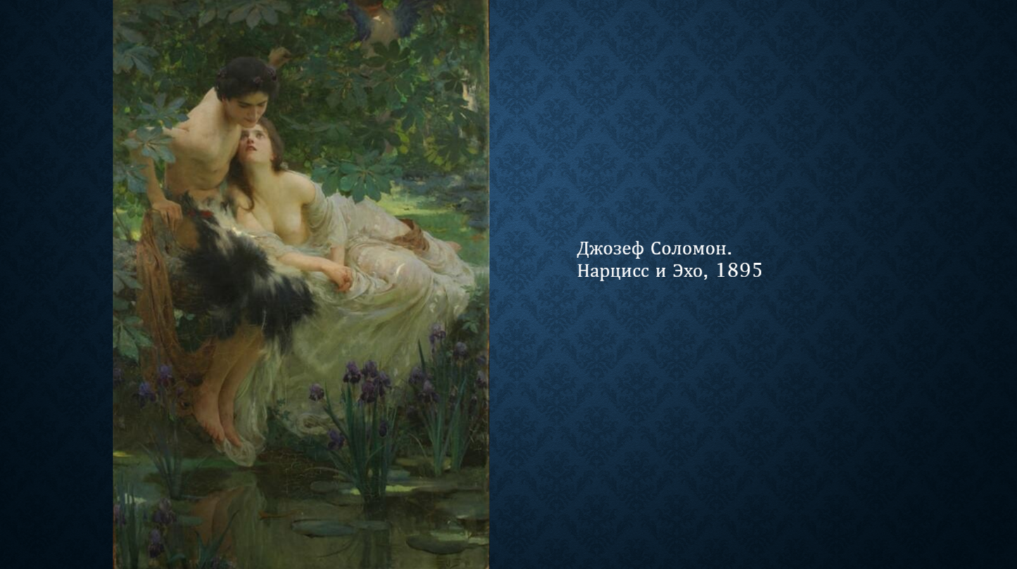 От Античности до нас дошло не так много произведений, но мы знаем, что это было время богов и героев. Покровители управляли жизнью и любовными порывами человека. Главное наследие этого периода - мифологические истории. Они использовались в разные эпохи и в разных объёмах. Хотя статуи и архитектура тоже важны, но мифы оставили более глубокий след в культуре. Например, история о суде Париса. Из всех благ и богатств он выбирает любовь любой женщины, предложенной богиней Венерой. Мы знаем об изменах Зевса его супруге Гере. Бог грома и молний принимал разные обличия, чтобы завоевать понравившихся ему женщин. Есть история о Нарциссе и нимфе Эхо, которая влюбилась в него, но была отвергнута. Есть миф о неразделённой любви бога Аполлона к нимфе Дафне. Все они показывают, как покровители вмешивались в жизнь людей, влияя на их судьбы. Каждому из них поклонялись отдельно и в их честь строили богатые храмы. Многие из них сохранились до наших дней в виде руин.