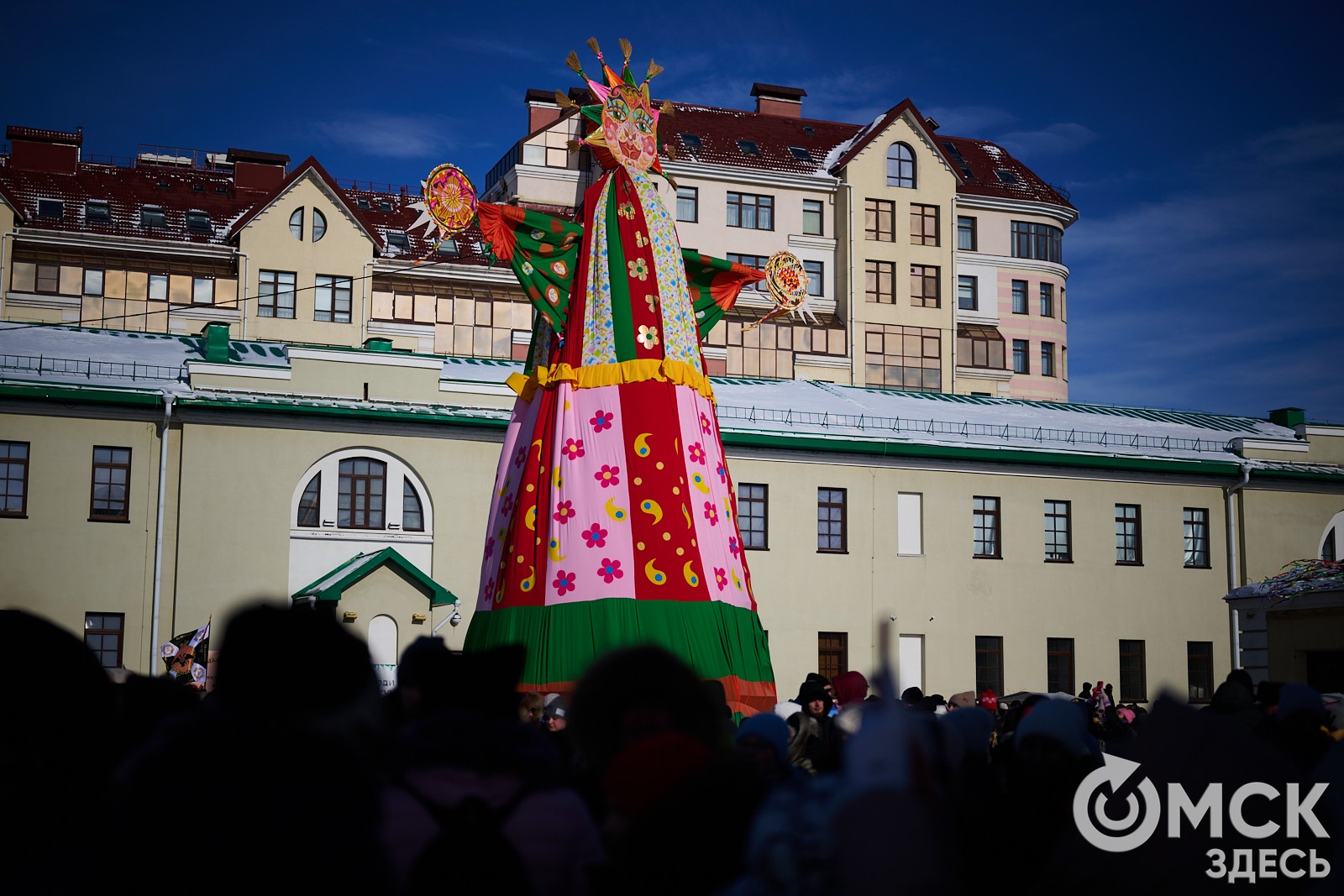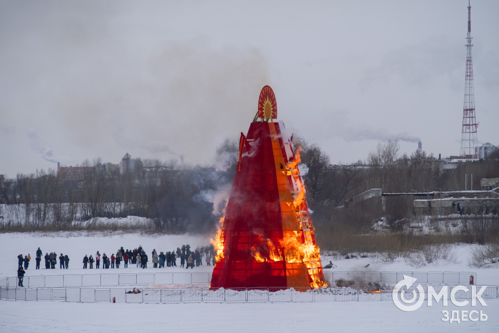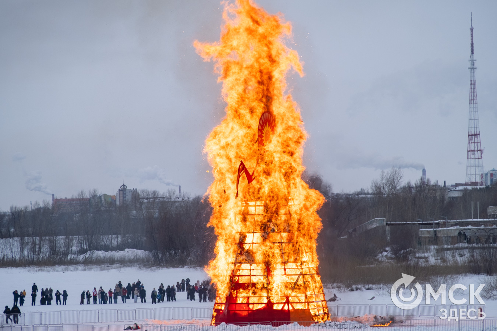 В Омской крепости вокруг 16-метрового чучела Масленицы водили хороводы. Для, чучела, которое стало рекордным по высоте за всю историю празднований проводов зимы, мастера сшили наряд, на который ушло 250 погонных метров ткани. Сжигать его, правда, не стали из-за сильного ветра и мер безопасности.