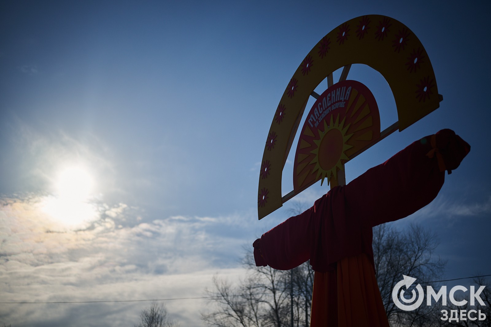 Чучело для традиционного сожжения, как символа прощания с зимой, подготовили на льду Иртыша на "Зелёном острове".