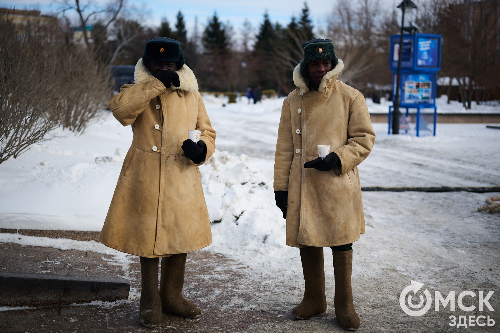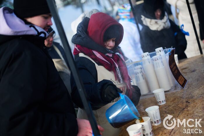 На Любинском проспекте раздали 2026 порций гречневых блинов в форме сердца. Для угощения пришлось замесить 102 килограмма теста по старинному рецепту, записанному в деревне Большеникольск Муромцевского района. Чай "Чалдоны" с рябиной и мёдом тоже приготовили в промышленных масштабах: 2000 литров воды и 44 кг заварки. Не обошлось без рекорда - 10 тысяч порций чая.