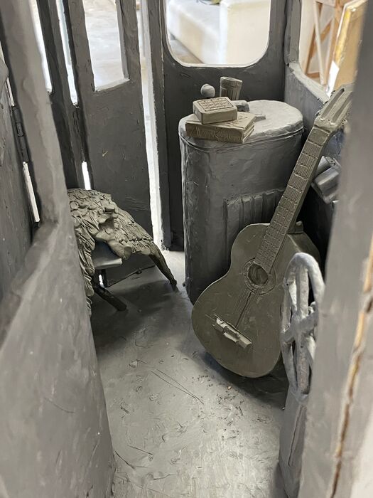 Работа над вагоном также в полном разгаре. В начале года над ним трудились столяры. Сейчас бригада скульпторов дорабатывает детали. К марту планируют завершить лепку из гипса. Сам трамвай после различных творческих размышлений и поисков решено деформировать, сделать выше по проёму, а кабины по бокам - под рост человека в 1,8 метра, чтобы не происходило эффекта "дома великанов" при попадании внутрь.