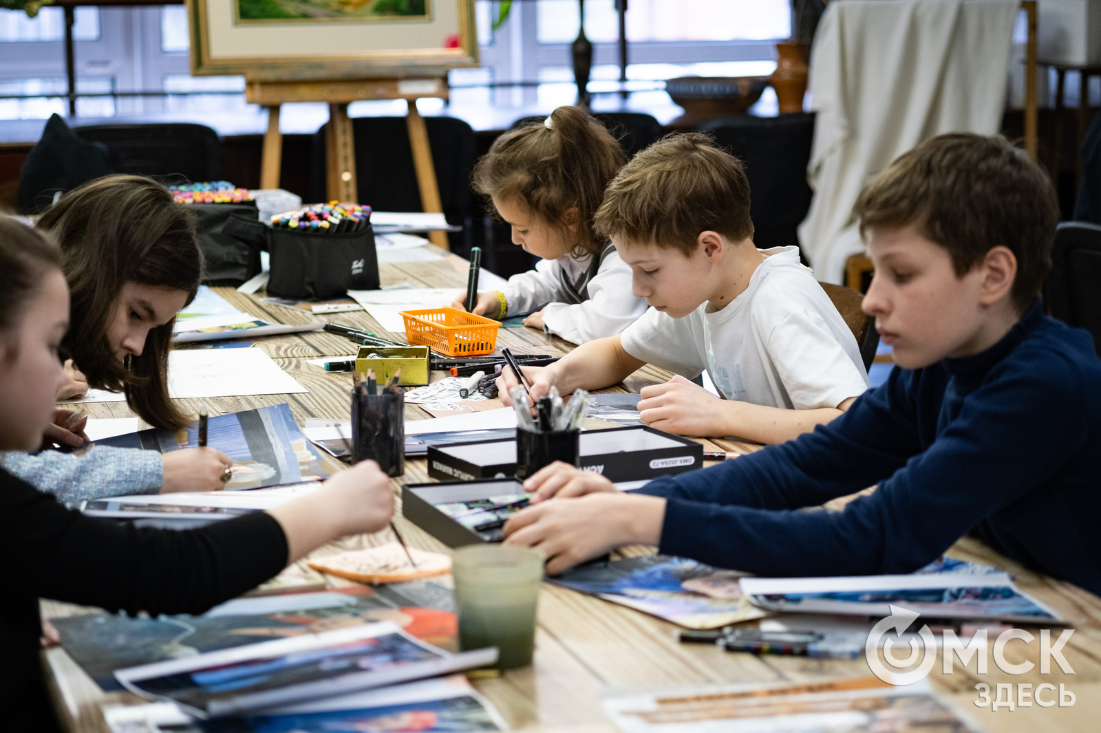Так, дети стали зрителями спектаклей "Камера обскура" (18+), "Как я съел собаку" (16+), "Амадей" (16+), "Магнит. Омская история" (16+), "Время женщин" (16+), "Дальше - тишина…" (16+), "Зойкина квартира" (18+), "Смит и Вессон" (16+), "Не боюсь Вирджинии Вульф" (16+), "Похороните меня за плинтусом" (16+), "Месяц в деревне" (16+), "Мой дедушка был вишней" (12+) и "Свадьба Кречинского" (16+). Всего на выставке омичи смогут увидеть 18 персонажей, в которых перевоплотились за свою карьеру омские актёры, и один отдельный портрет (кого - пусть останется сюрпризом) на фоне театра. Но прежде, чем писать портреты артистов, погружённых в выдуманную реальность, ребятам предстояло подробно обсудить, что же такое они увидели на сцене, в чём состоит миссия актёра и для чего вообще людям понадобился этот театр.