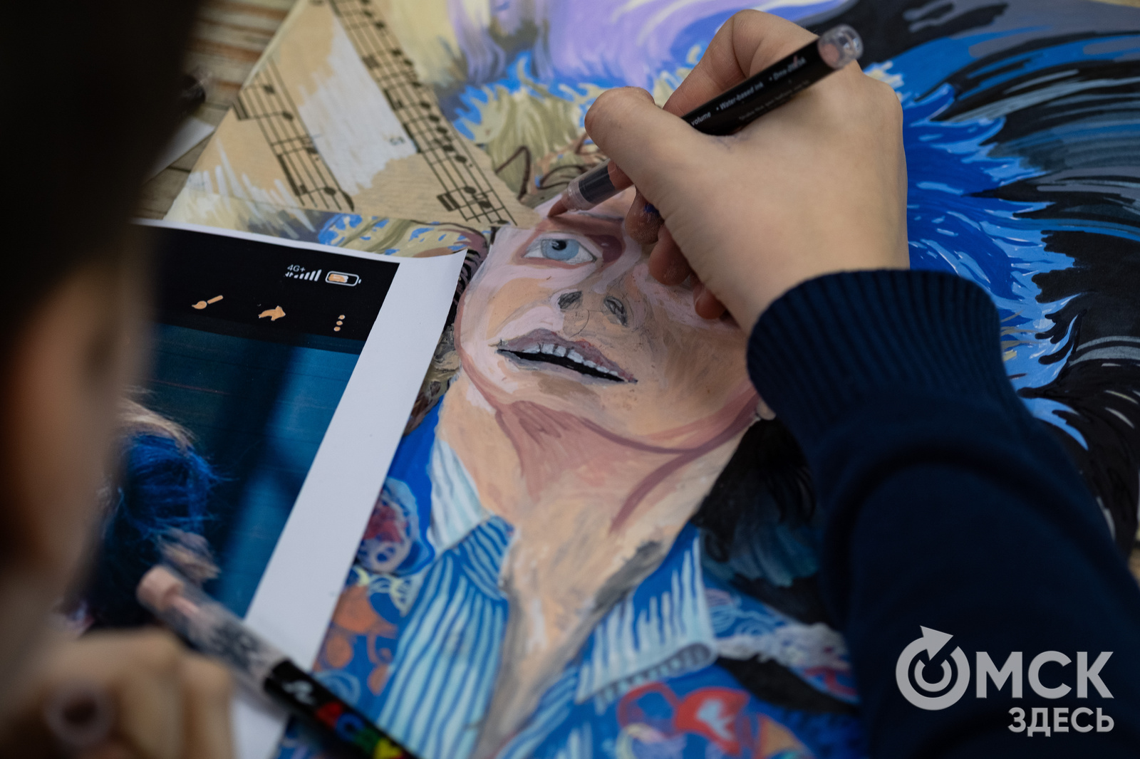- На этапе обсуждения будущих портретов я обращала внимание на то, что театральное искусство имеет свои особенности, что артиста нельзя идентифицировать с его образом. Нужно учитывать: спектакль - это цельное действие, не просто костюм, свет, звук. Вся атмосфера театра работает на общее впечатление, - поделилась с "Омск Здесь" преподаватель по изобразительному искусству Наталья Раснер.