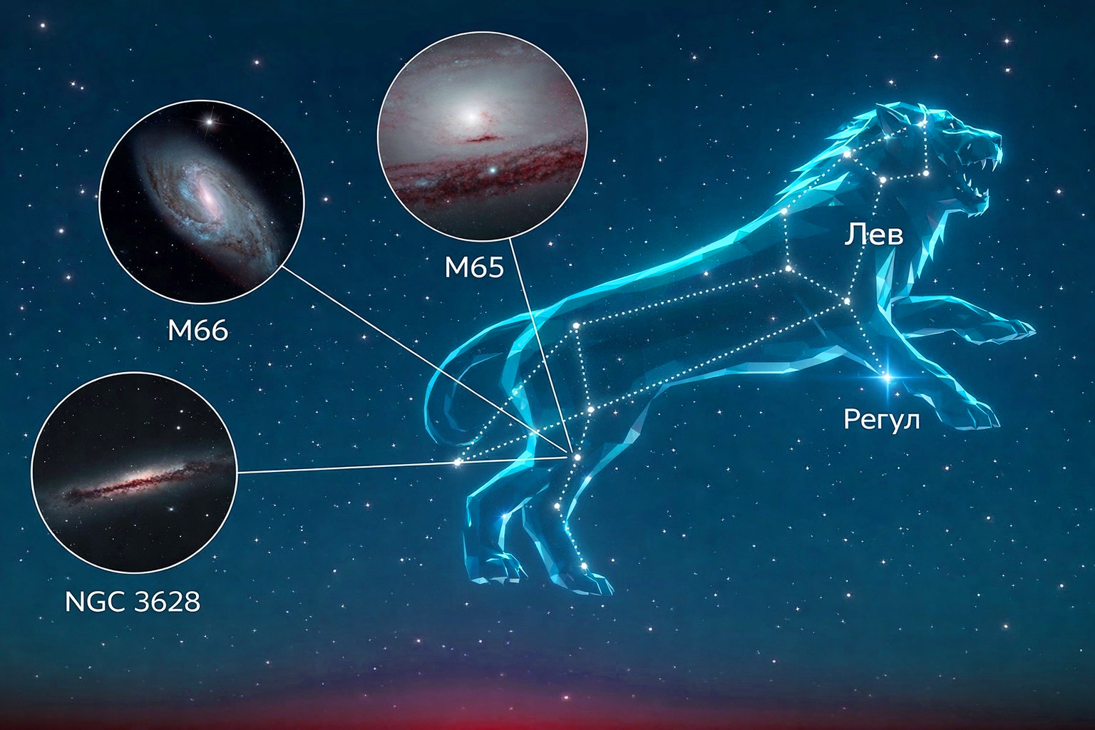 Созвездие Льва находится большей частью в северном небесном полушарии и является одним из самых узнаваемых зодиакальных созвездий. Оно было каталогизированным греческим астрономом Птолемеем во II веке. Его довольно легко определить благодаря звёздному узору под названием "Серп", который выглядит как зеркально перевернутый вопросительный знак. Он очерчивает голову и гриву небесного хищника.